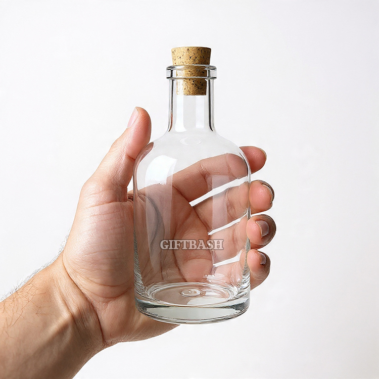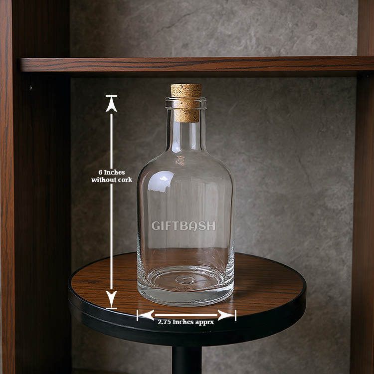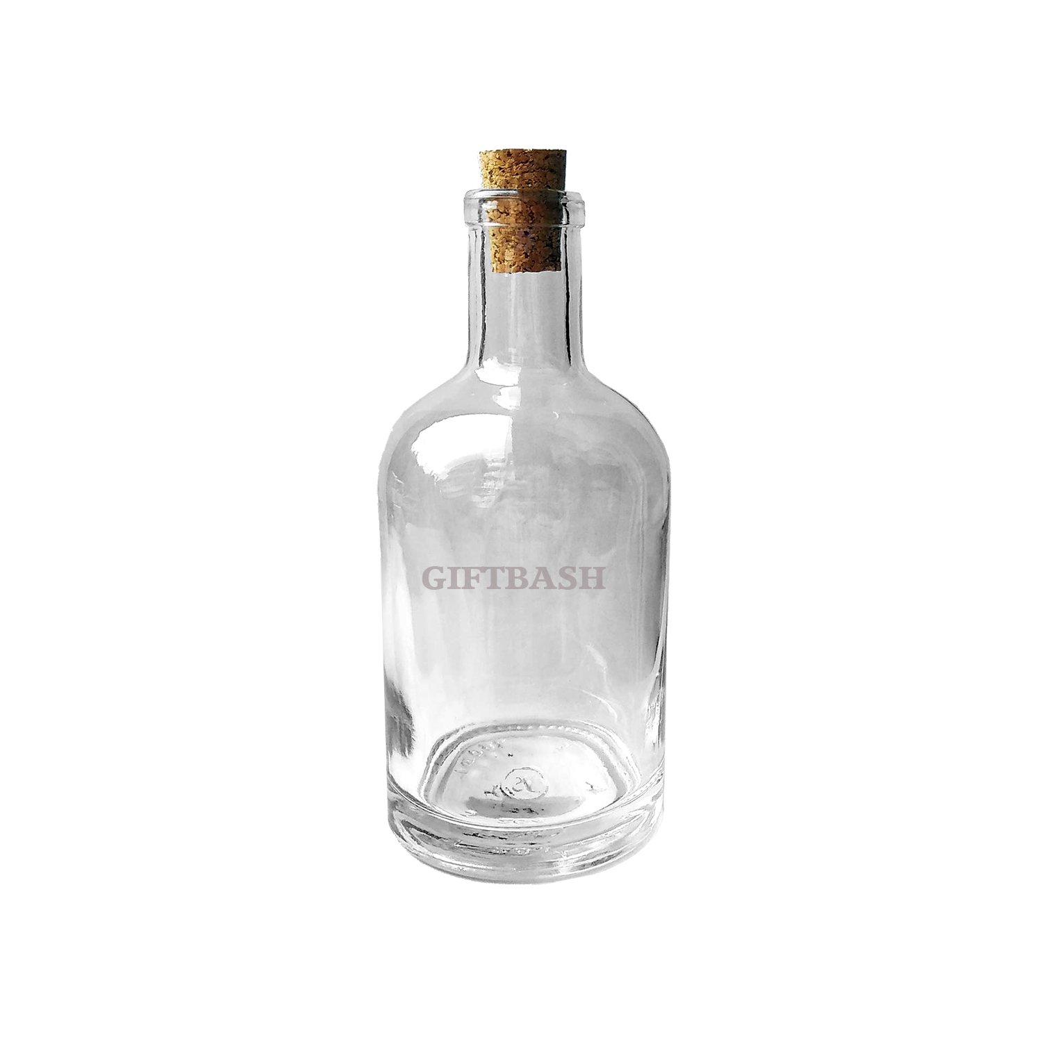 GIFTBASH 250ml Premium Round Classic Glass Bottle with Cork LID.