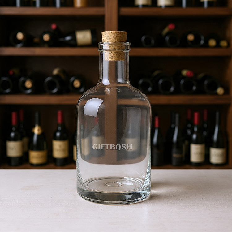 GIFTBASH 250ml(FD) Premium Round Classic Glass Bottle With Cork LID.