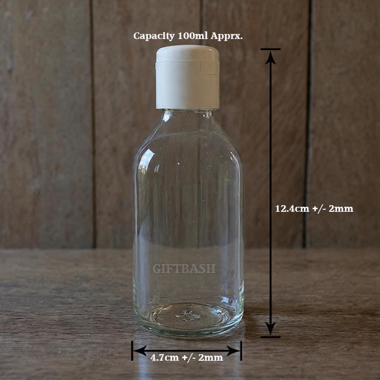 GIFTBASH 100ml Glass refillable Round Bottle with Flip Top Cap for Multi use