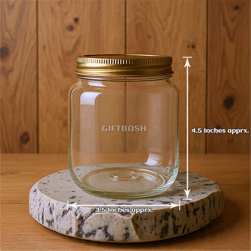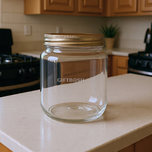 GIFTBASH 500ml Round Glass jar with Air Tight Rust Proof Screw Metal Lid