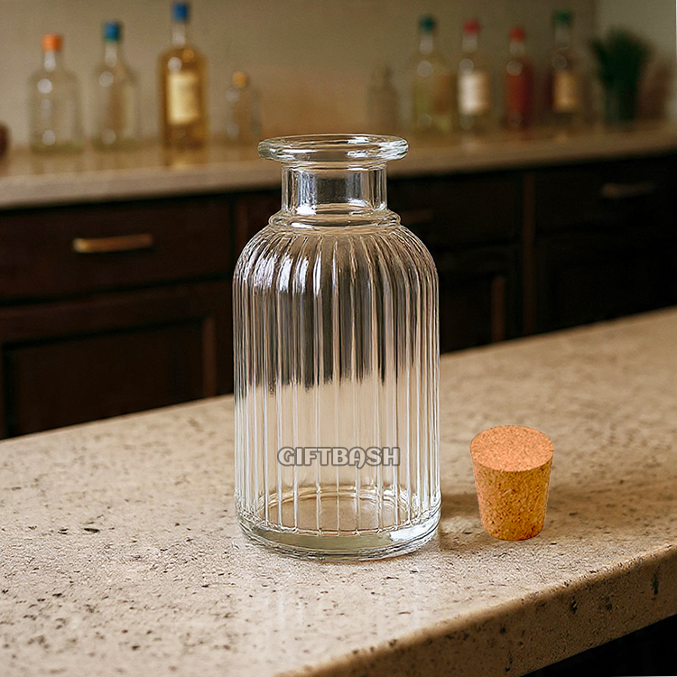 GIFTBASH Premium Ribbed Glass 100ml Each Diffuser Bottle with Wooden Cork Lid